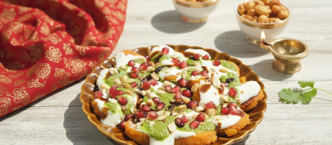I remember one Navratri, when I was feeling low on energy after a long day of fasting, I took a bowl of this chat — warm, creamy curd coating the soft sweet potatoes, the crunch of roasted peanuts, tangy hits from green and tamarind chutneys, and the burst of freshness from pomegranate seeds. That first bite instantly lifted my spirits.